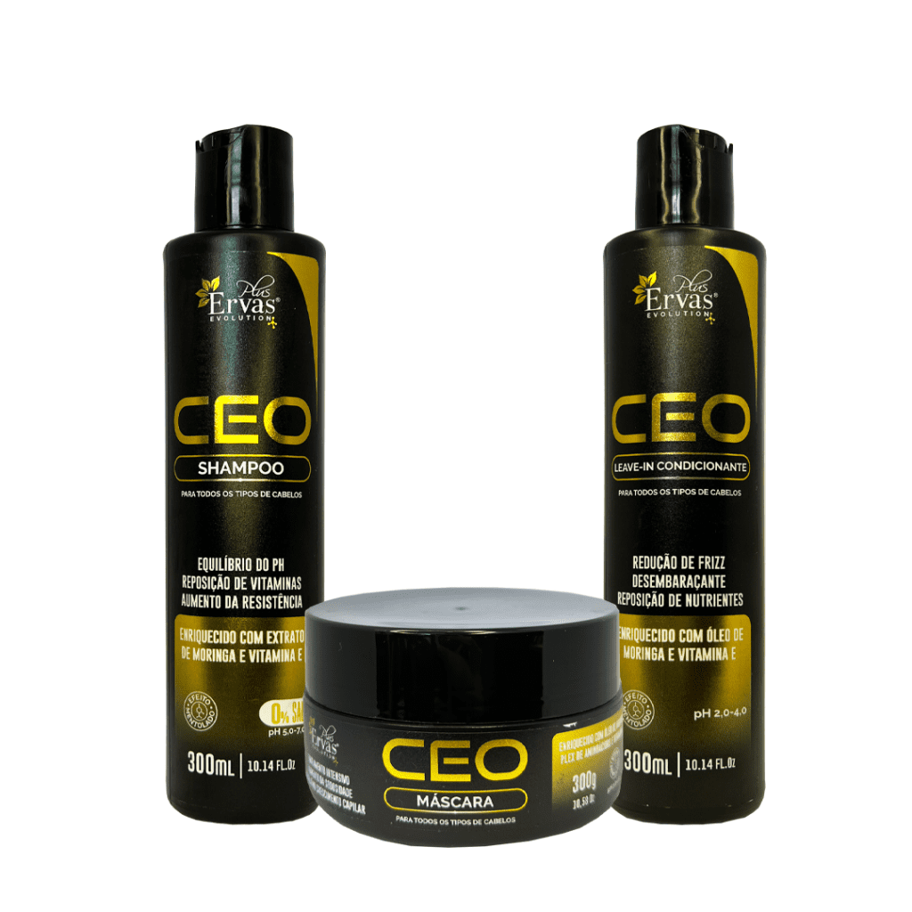 O visual tecnológico da Linha CEO atende os clientes mais modernos que se interessam pela sobriedade do preto em conjunto com a elegância do dourado. Sua formulação é enriquecida principalmente com Moringa, também conhecida como elixir da juventude por ser rica em nutrientes devido à presença de uma variedade de fitoquímicos essenciais em suas folhas, vagens e sementes.