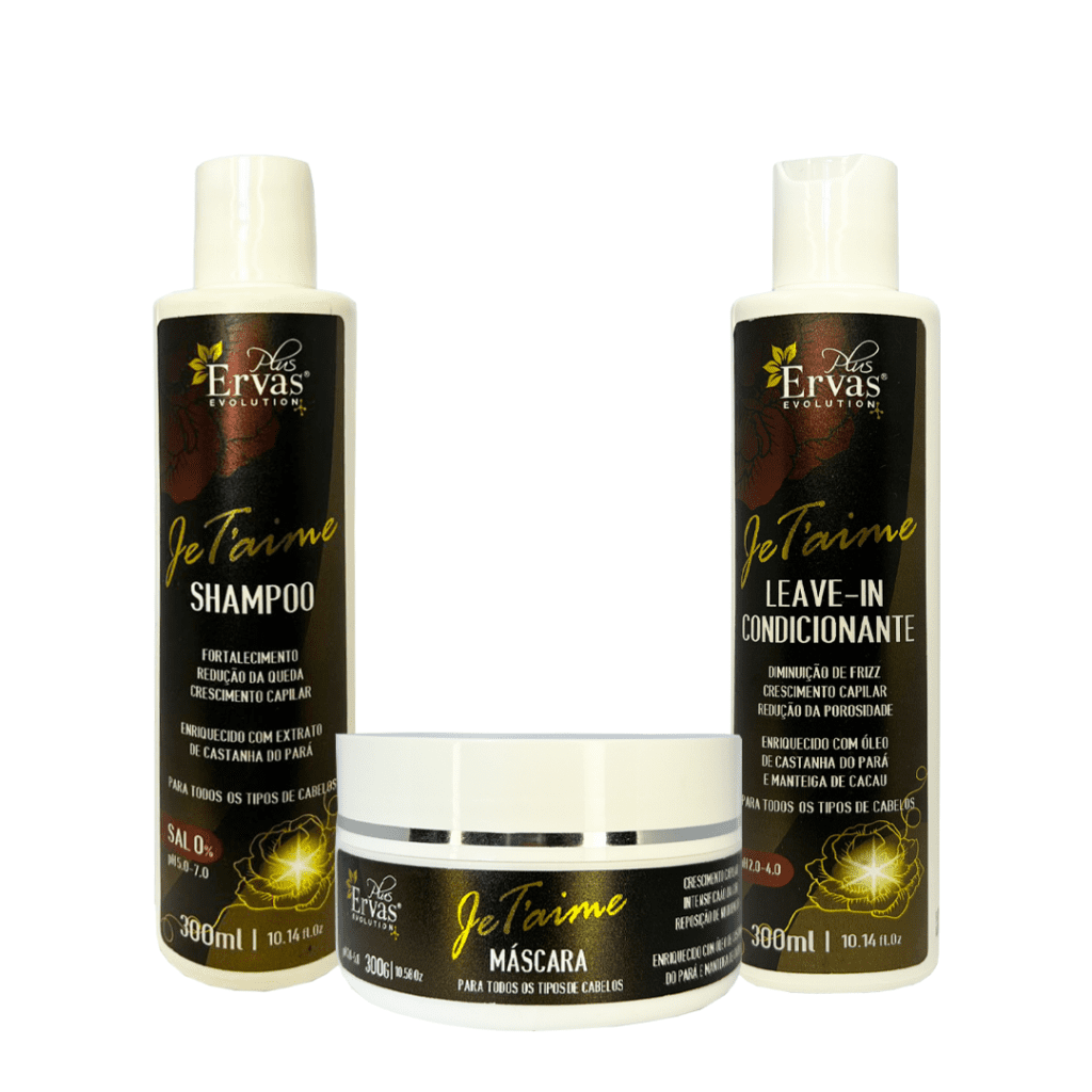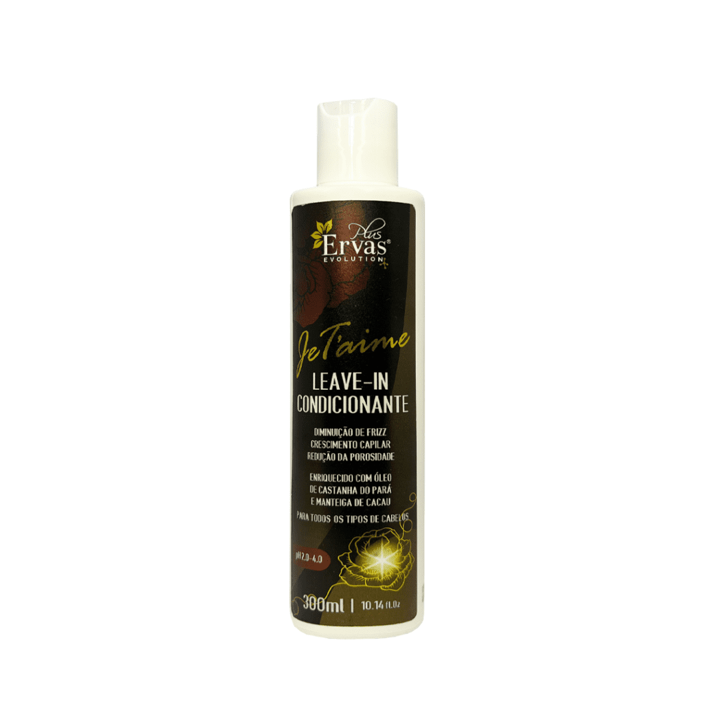 Condicionador: Após o uso da Máscara da Linha Je T’aime, aplique o Leave-in Condicionante no cabelo molhado, massageando os fios de 2 a 3 minutos e enxágue.